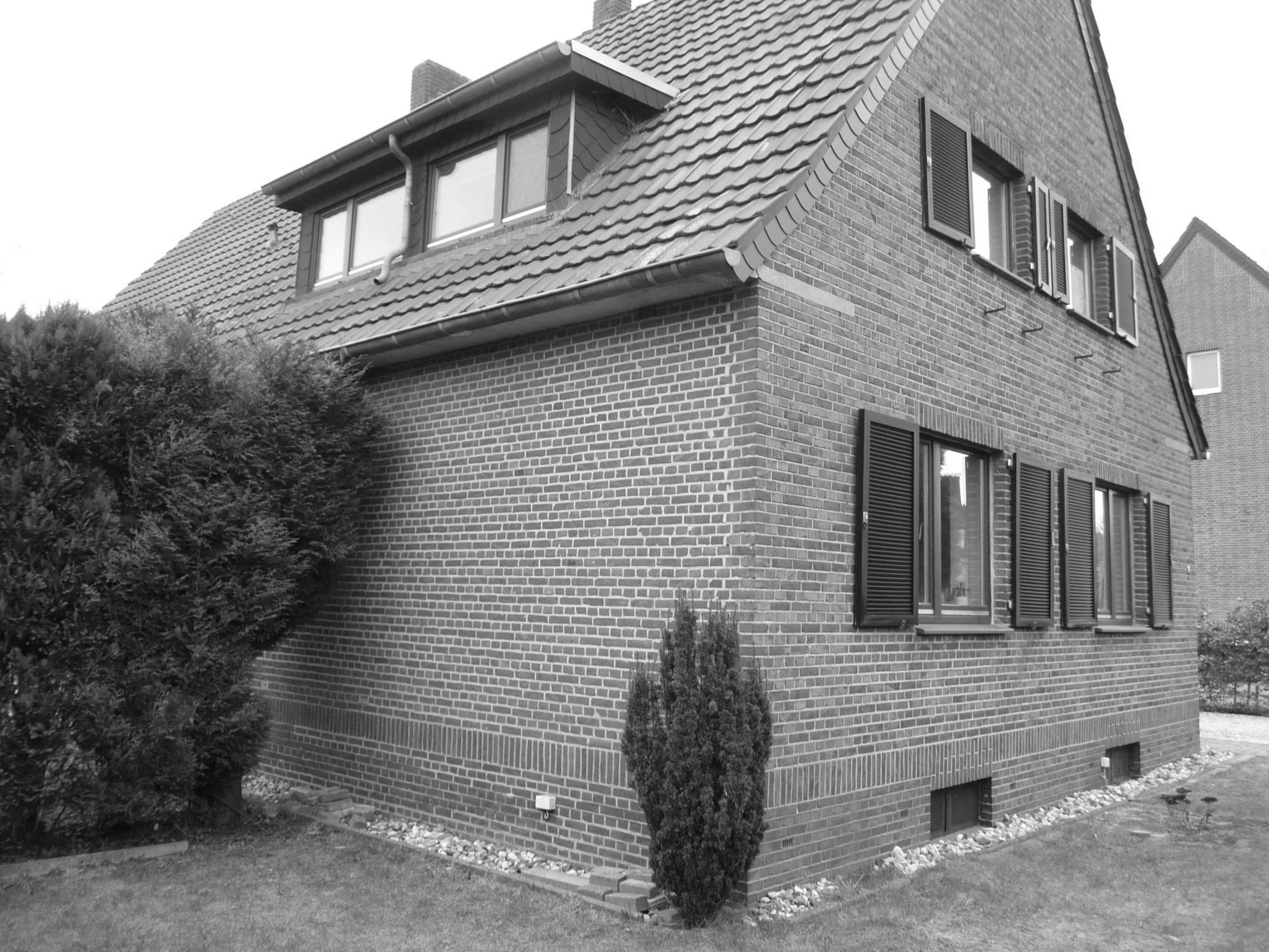Der starke Kontrast zwischen dem roten Klinker des Bestands und der neuen Holzfassade aus unbehandelter Lärche ergibt ein stimmiges und individuelles Erscheinungsbild.