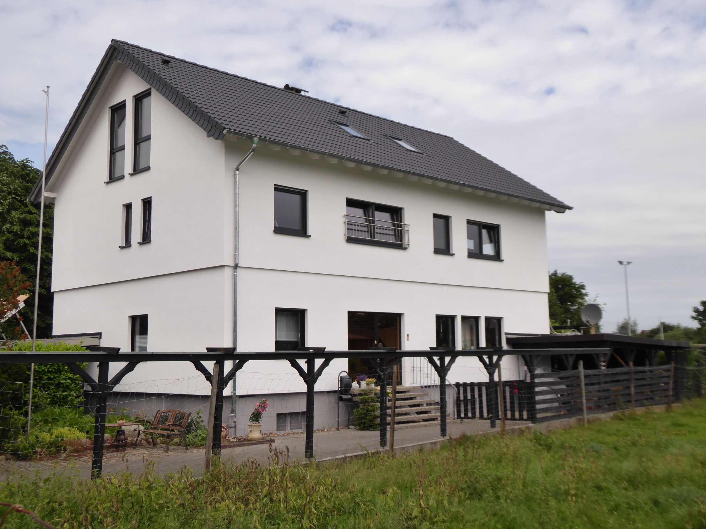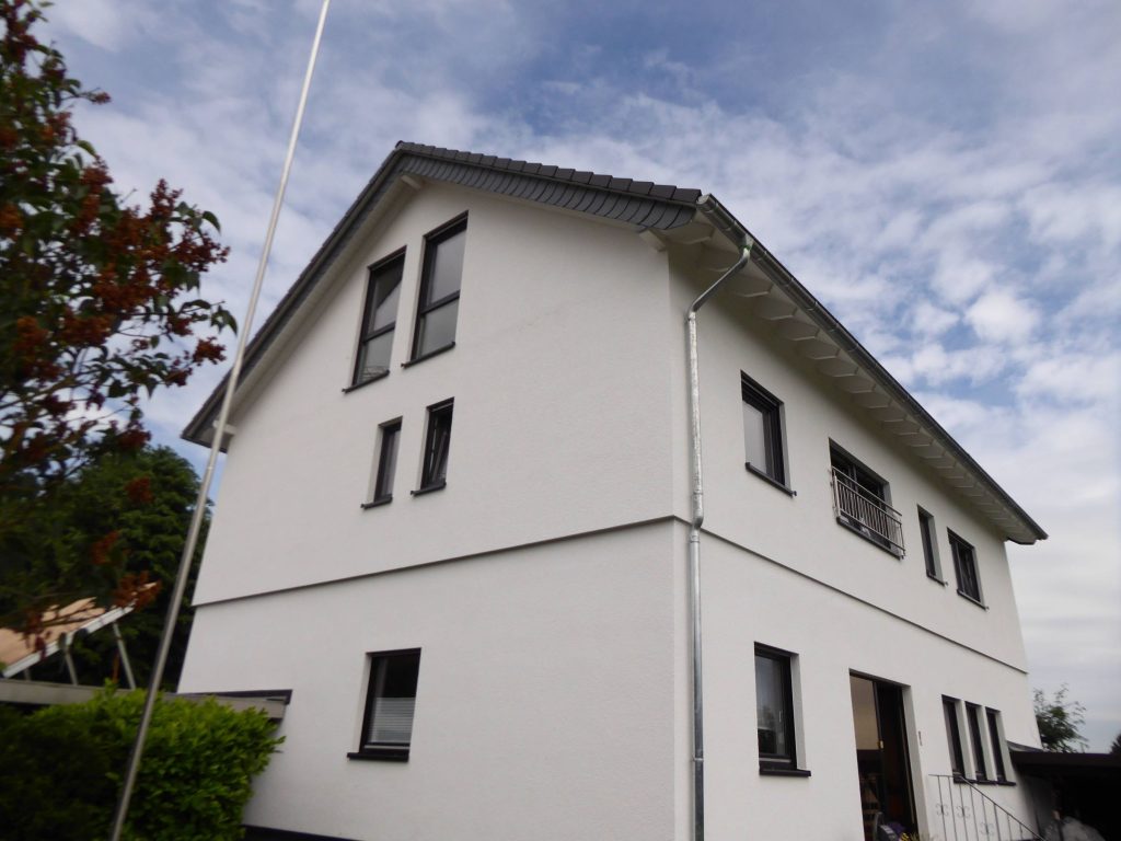 Eine Veränderung die sich sehen lassen kann. Eine neue Fassade und ein zusätzliches Geschoss geben dem Zweifamilienwohnhaus ein modernes Erscheinungsbild und lassen es in neuem Glanz erstrahlen. Das zuvor zweistöckige Fertighaus aus den 70er Jahren wurde um eine zusätzliche Etage erweitert. Zwischen Erdgeschoss und Dachgeschoss befindet sich nun eine weitere Etage, die den Bauherren rund 100 m² mehr Wohnfläche zur Verfügung stellt.