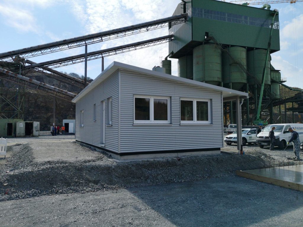 Diese beiden betrieblichen Bauten beherbergen Büro- und Sozialräume für den Steinbruch in Meschede. In leichter und trockener Holzrahmenbauweise wurden die beiden Gebäude binnen kurzer Zeit errichtet und bieten so eine gelungene und wirtschaftliche Alternative zu klassischen Bürocontainern.