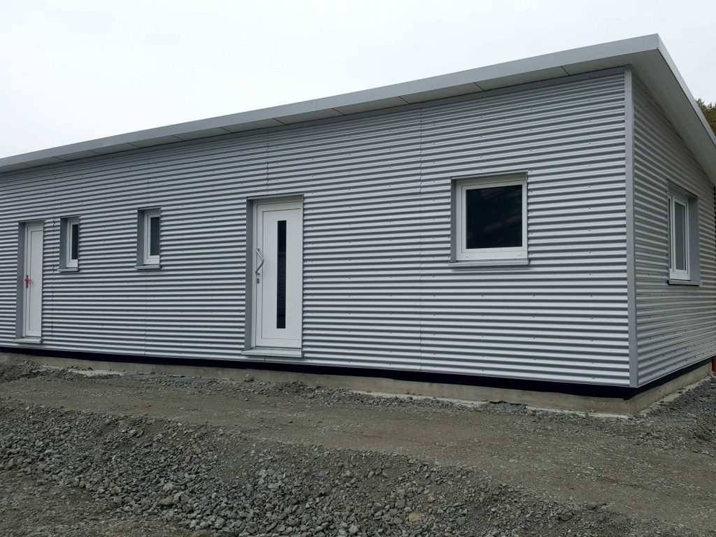 Die Fassade wurde mit einem Aluminium-Wellenprofil verkleidet, um eine unempfindliche Oberfläche zu schaffen.