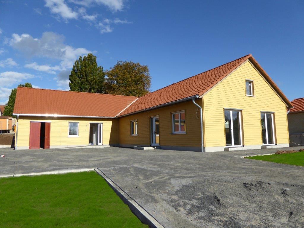 In dem Gebäude mit einem „über Eck“ angelegten Grundriss sind verschiedene Arbeits- und Sozialräume für den Küchengarten Kloster Haydau untergebracht.
