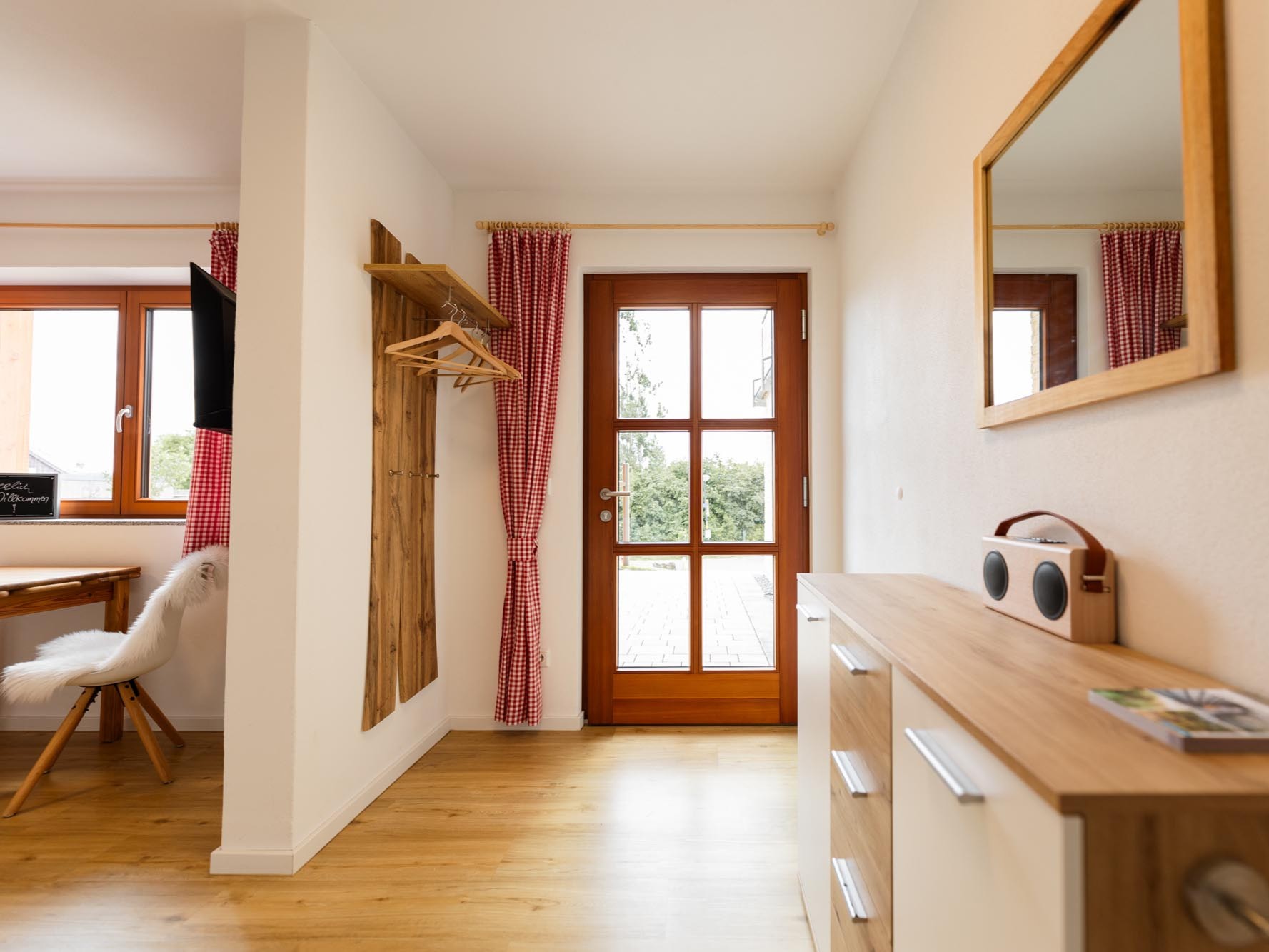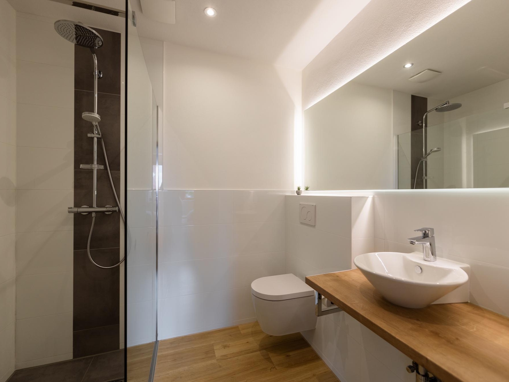 Im Kellergeschoss befinden sich ein Vorrats- und ein Technikraum. Der übrige Platz wurde als Einliegerwohnung realisiert. Aktuell als Ferienwohnung genutzt, bietet die Einliegerwohnung mit offen geschnittenem Wohn-Schlaf-Bereich samt Küchenzeile und modernem Bad genügend Platz und eine ruhige Umgebung für ein bis zwei Urlauber in der Region.