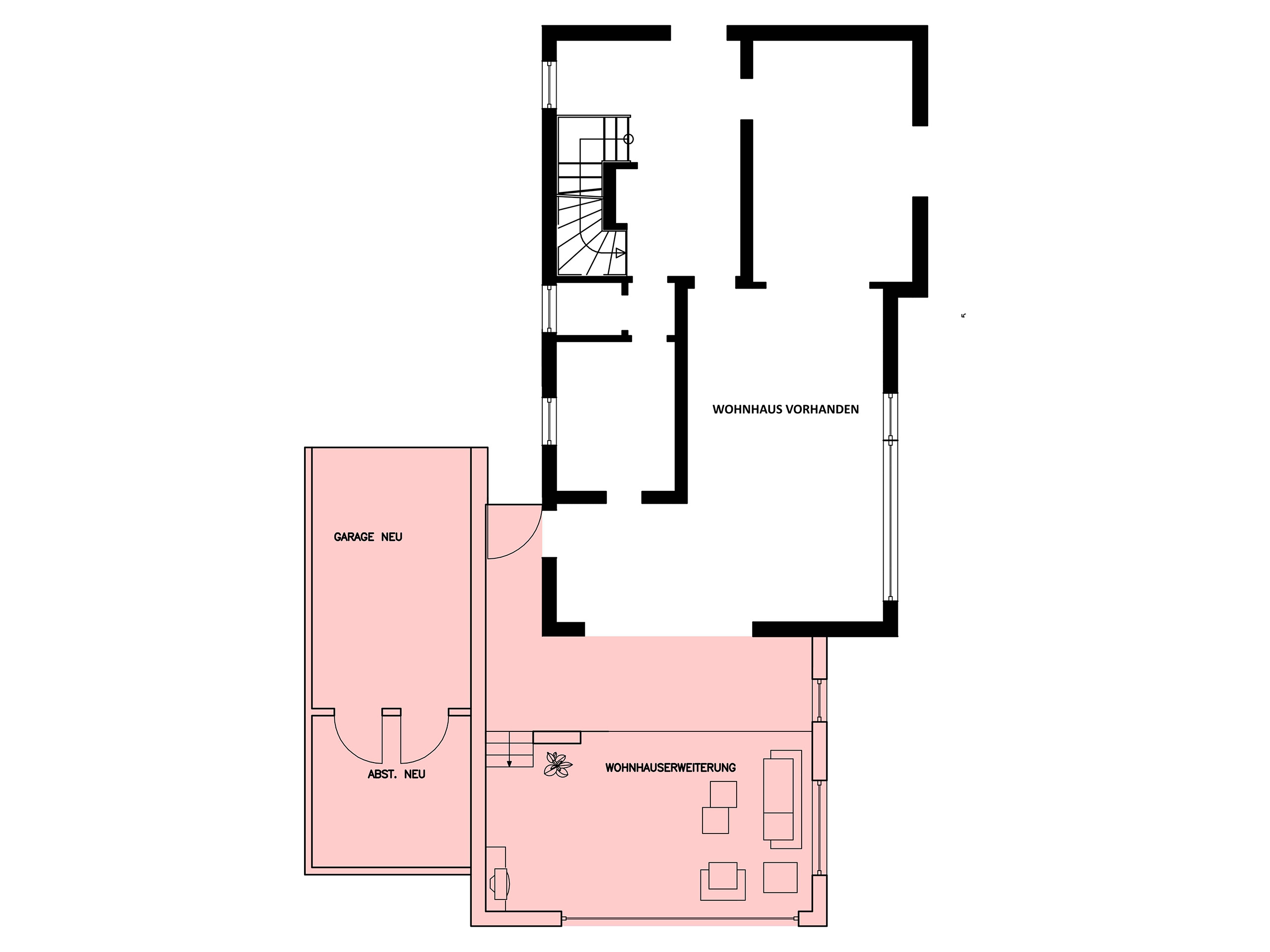 Mehr Raum zum Wohnen und eine neue Garage mit Abstellraum waren die Wünsche der Bauherren. Der weitläufige Garten bot ausreichend Platz, um genau diese Vorstellungen verwirklichen zu können. Im nicht ganz 40 Quadratmeter großen Flachdachanbau erstreckt sich eine stilvolle und elegante Wohnlandschaft. Die Eleganz der Innenräume spiegelt sich auch optisch in der Fassadengestaltung wieder: Ein schlichter Kubus mit Ausstrahlung.