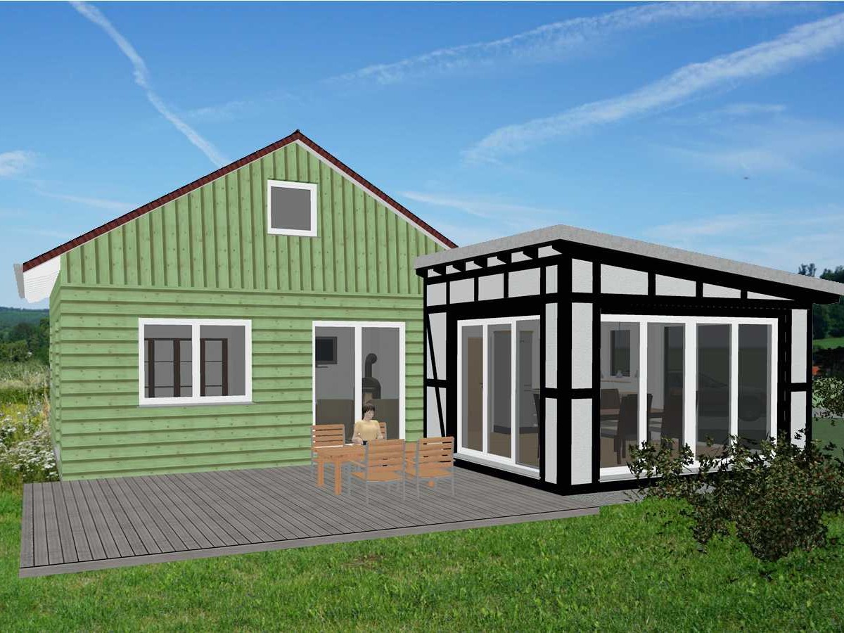 Inmitten der fast unberührten Natur steht dieses individuelle Wohnhaus mit seinem traumhaften Charme. Am Rande der Ortschaft auf einem exzellenten Grundstück gelegen, umgeben von Wald und Wiesen, passt sich die grüne Holzfassade und das Gründach über dem Fachwerk optimal in die Umgebung ein.