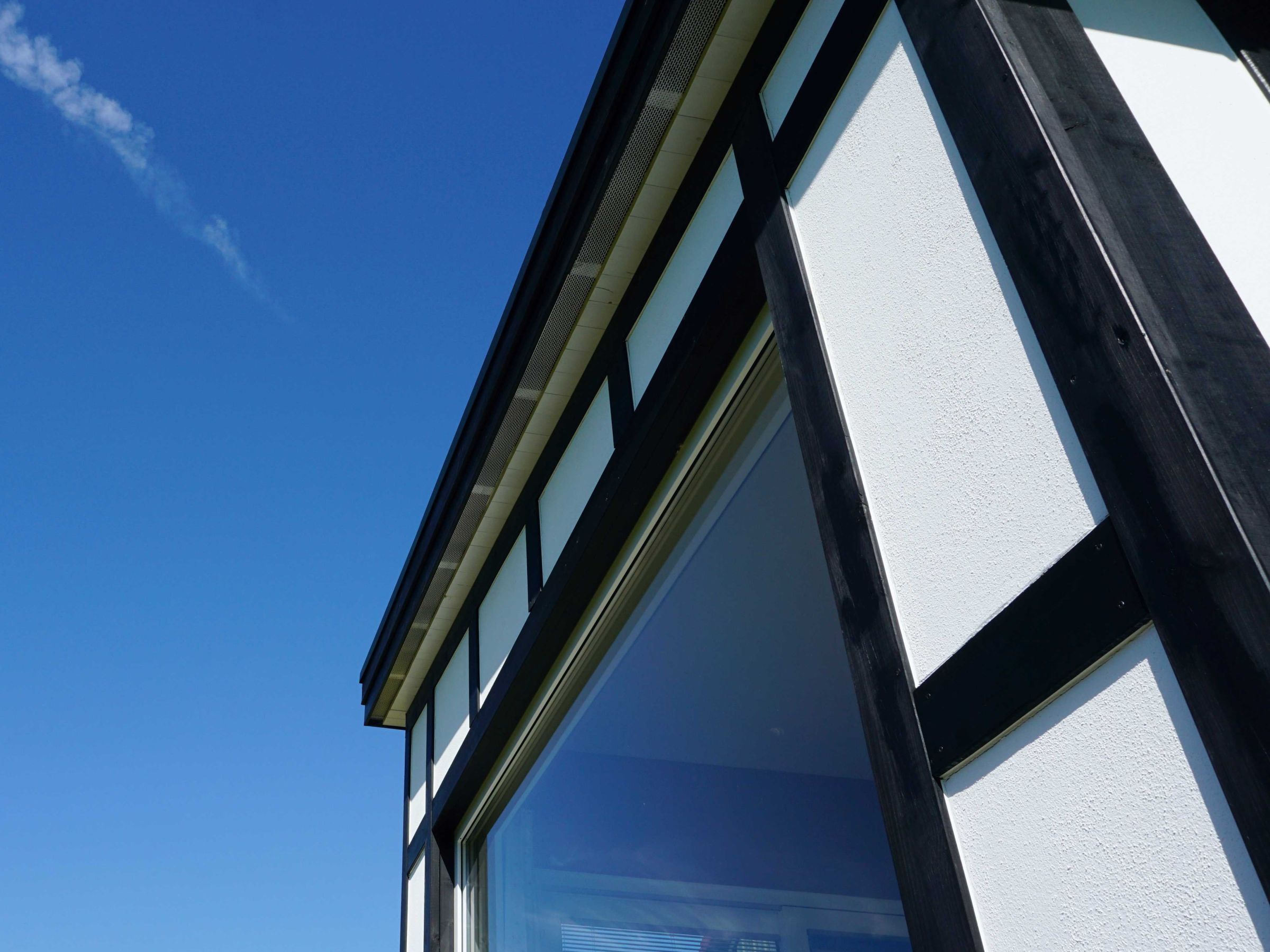 Bei der Gestaltung der Fassade sind sowohl eine waagerechte als auch senkrechte Holzverkleidung und ein schwarz-weißes Fachwerk zum Einsatz gekommen. Diese eher außergewöhnliche Kombination zeigt die Individualität des Hauses und verleiht ihm seinen ganz besonderen Charme – ein wahrlich fabelhafter Hingucker mit persönlicher Note, der vorbeigehende Spaziergänger staunen lässt.