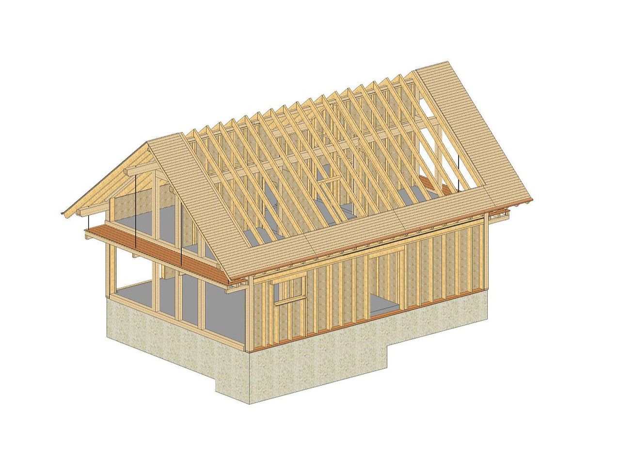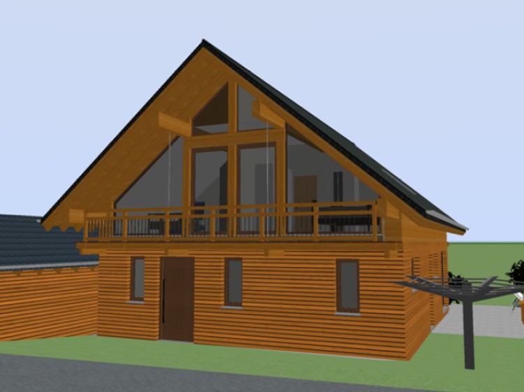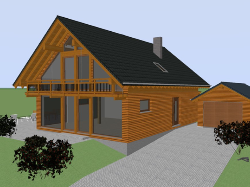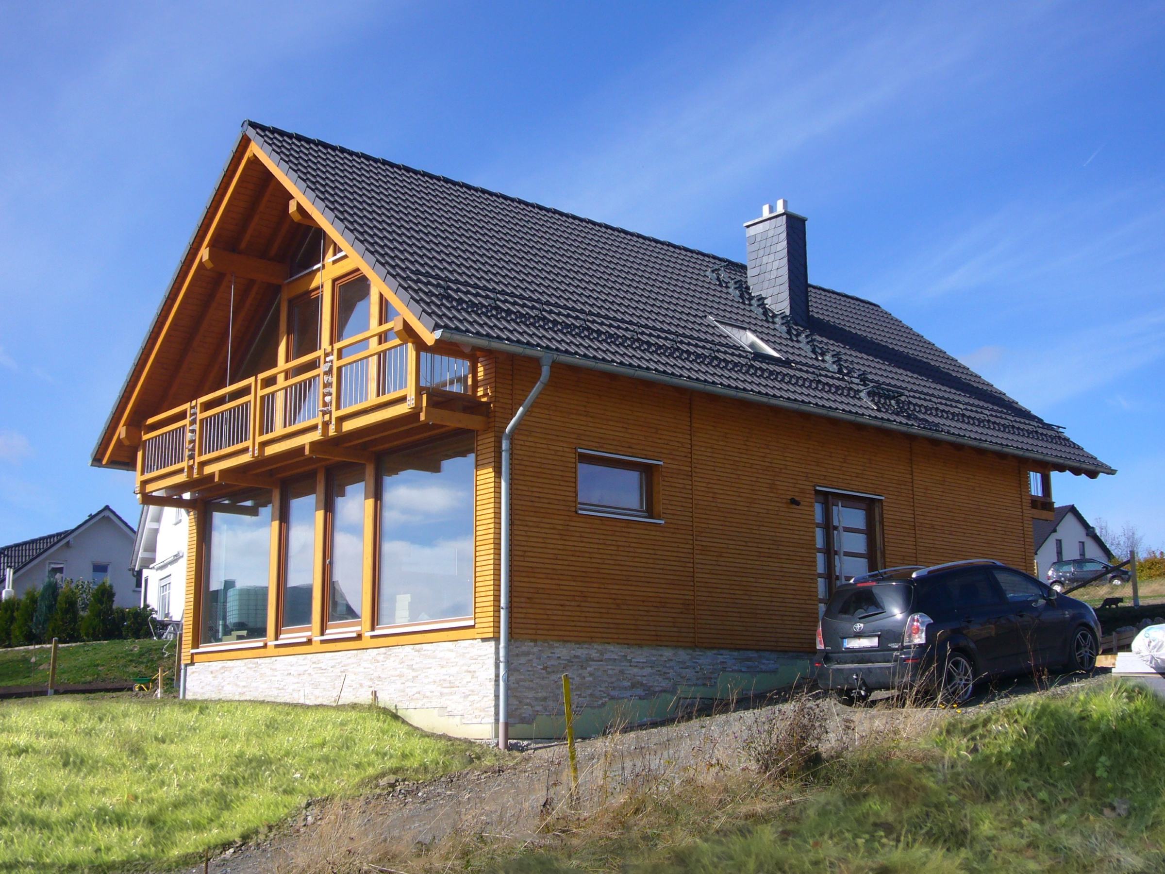 Sowohl auf der Nord- als auch auf der Südseite sind Skelettbaugiebel in die Holzrahmenbauweise des Wohnhauses integriert worden. Versehen mit großflächigen Glaselementen bringen sie den Bauherren viel Licht und Helligkeit in ihre Wohnräume. Aufgehängte Balkone auf beiden Giebelseiten sind von vier Räumen aus zugänglich und laden die Bauherrenfamilie zum Verweilen ein.