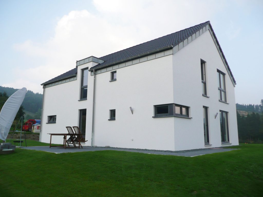Einfamilienhaus in Holzrahmenbauweise mit moderner Putzfassade